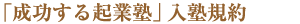 「成功する起業塾」の入塾金および授業料は、別紙【「成功する起業塾」入塾のご案内】に示すとおりとします。入塾申込書を郵送あるいはFAX、WEBからの場合は、登録フォームからの送信により株式会社Sofiaコンサルティングネットワークに送付していただいた後、弊社から請求書をお送りいたしますので、入塾金および授業料を請求書と共にお送りする納入の方法にしたがって株式会社Sofiaコンサルティングネットワークの口座にお振込みください。FAXで入塾申込書を送付された方は、最初の授業の際に申込書をご持参ください。